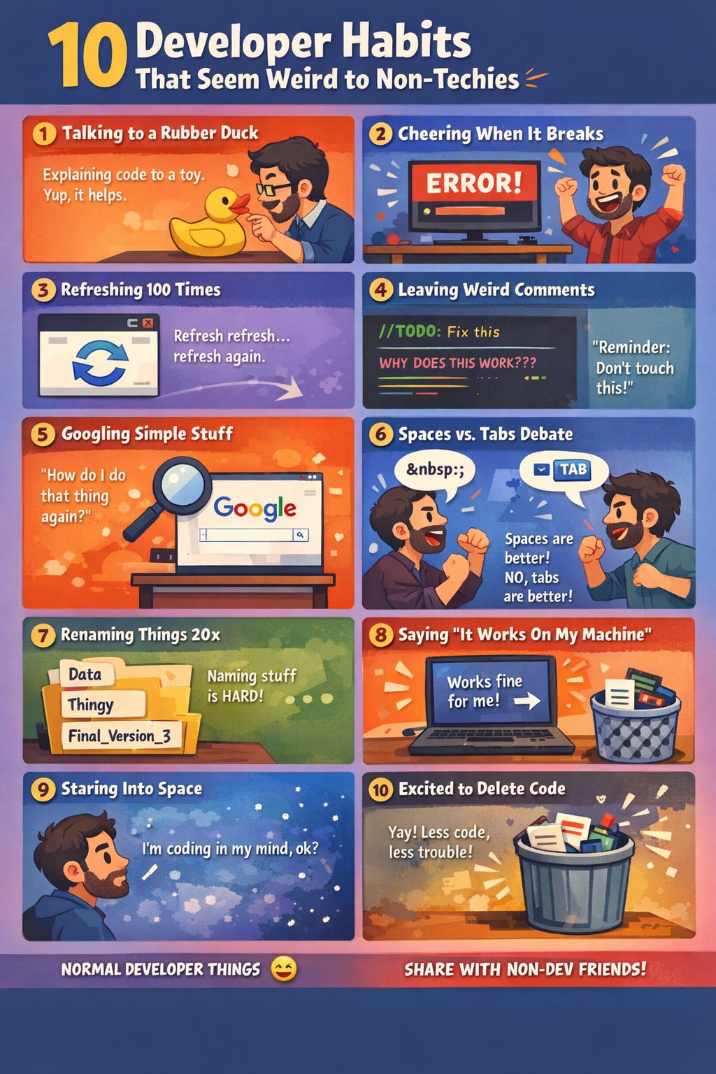 Here are 10 developer habits that feel bizarre to non-tech friends — and why they’re actually practical.